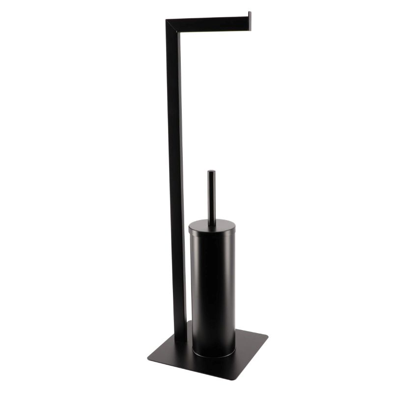 Црн Самостоен Држач Тоалетна Хартија+WC Четка Метал 96152108