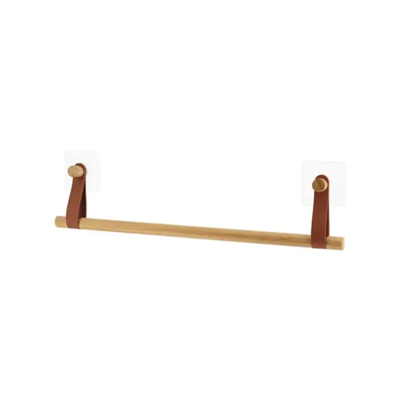 Ширината од 50 cm овозможува да биде совршен за чување на крпи, а носивоста од 2 kg ги задоволува секојдневните потреби во бањата. Комбинацијата на бамбус и кафеав ремен креира топлина и елеганција, без потреба од дупчење на ѕидот.